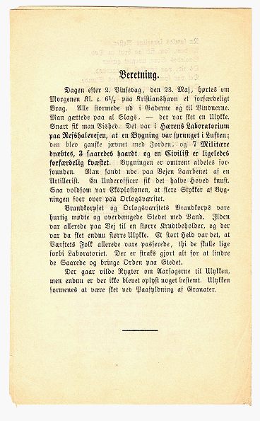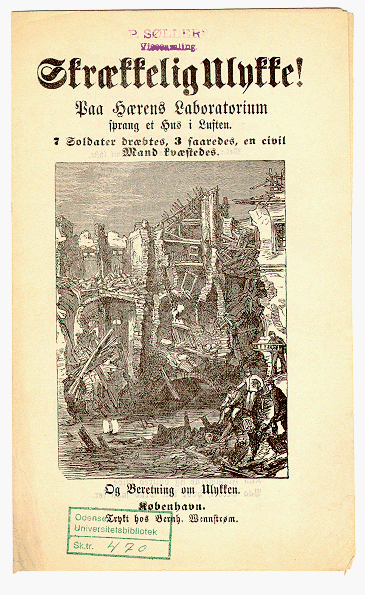 Skrækkelig Ulykke! Paa Hærens Laboratorium sprang et Hus i Luften |