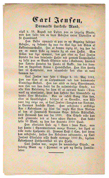 Danmarks stærkeste Mand, Carl Jensens ulykkelige Død |